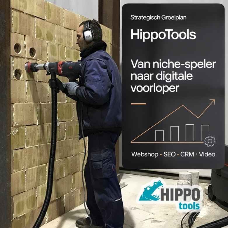 Hippotools hoeft niet te winnen op assortimentbreedte of bodemprijs. Hippotools wint door onafhankelijk specialist te zijn: objectief advies, betrouwbare service, en een digitale ervaring die de vakman sneller naar de juiste oplossing brengt.